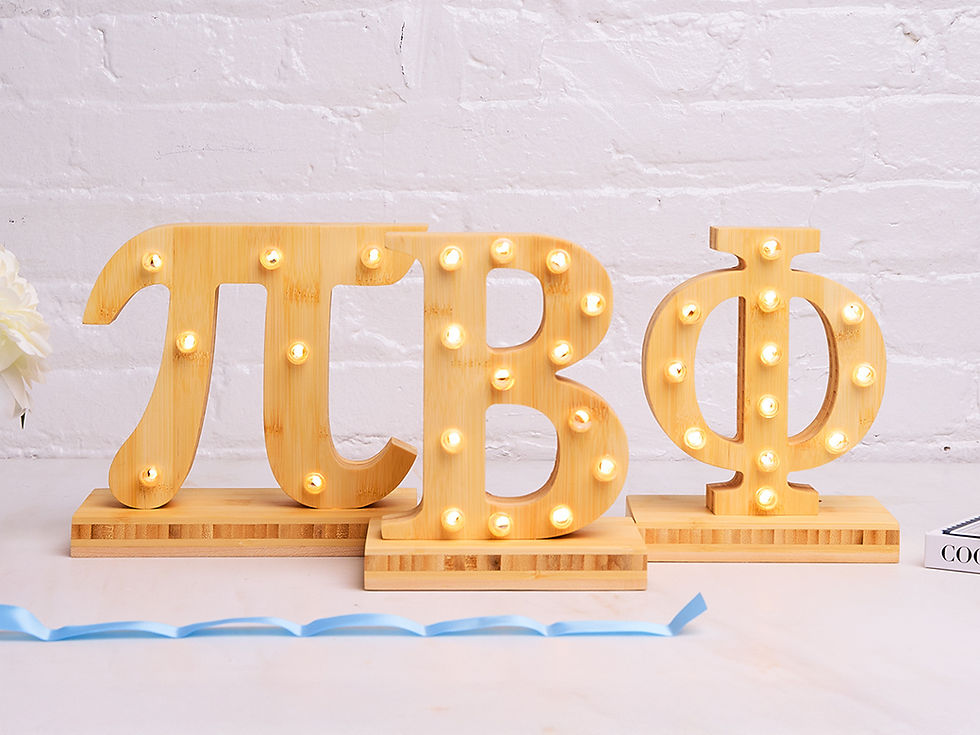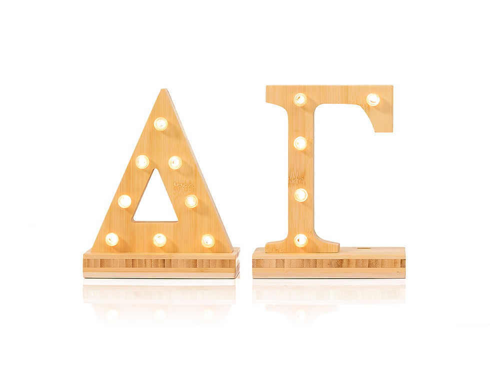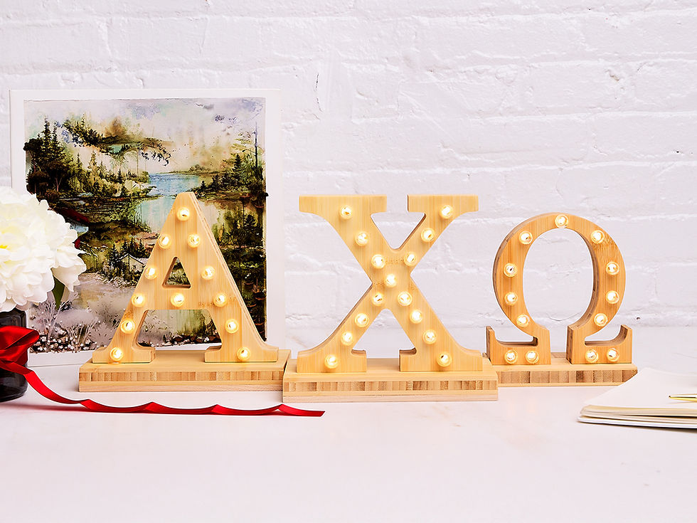 Choose your sorority to explore officially licensed handcrafted marquee LED lights. Every piece is cordless, warm-lit, safe for dorms, and made to illuminate sisterhood.